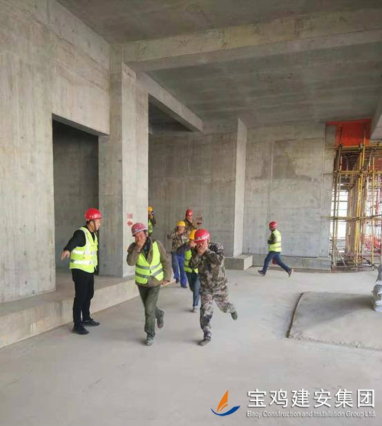 建筑施工現場的安全防范一直是建筑行業工作的重點,冬季施工消防工作更是重中之重,為切實加強施工現場消防安全教育,提高施工現場各單位應急救援小組應對火災危險的應急處置能力,積累應急組織、人員疏散、消防救助等實戰經驗,切實做好施工現場的安全工作。2018年11月21日下午在寶雞建安集團公司承建的泰森?億佳苑項目施工現場舉行了一場消防應急疏散演習。本次活動由寶雞建安集團股份有限公司、陜西中安工程咨詢管理有限公司、陜西泰森房地產開發有限公司聯合組織演習。施工現場100多人參加了本次演習活動,學習到處置火災危險的應急方法,達到了演習目的。 演習活動前,寶雞建安集團公司安全部經理何偉,科員符鵬、張震及寶雞建安集團公司第六項目部應急救援小組組長邵哲明、周潔組織項目部應急救援小組成員針對施工人員火場逃生、救援疏散等事項,精心設計了消防演習方案,并就施工現場消防設施的分布,以及火災發生時應該注意的事項進行了說明。