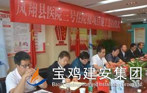 鳳翔縣醫院3號住院樓是鳳翔縣十大重點建設工程之一,也是我公司2019承建的重點項目之一。鳳翔縣醫院3號住院樓合同于2019年9月29日上午,在縣醫院醫院門診六樓會議室舉行施工合同簽約儀式。鳳翔縣人民政府副縣長牛建強,鳳翔縣衛健局黨組書記、局長王晨輝,寶雞建安集團董事長景常榮,縣醫院院長李榮華等多人參加了簽約儀式。