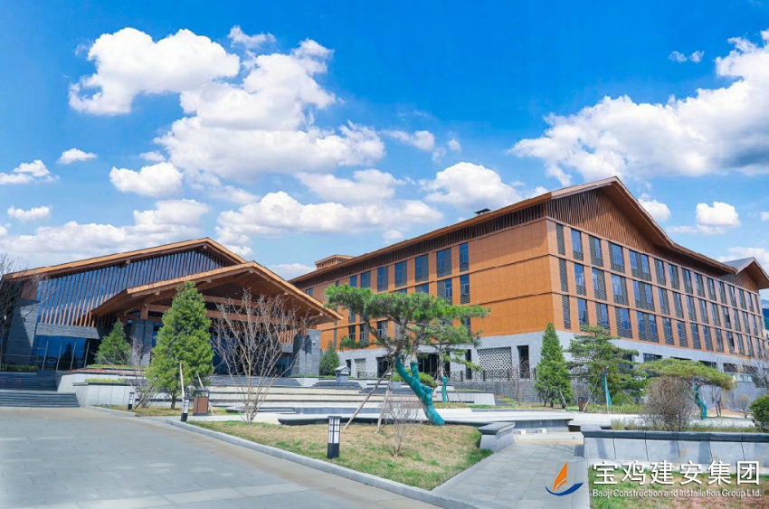 寶雞建安集團股份有限公司的前身系我市第一建筑工程公司,成立于1962年,是一家擁有近60年輝煌歷史的老牌建筑勁旅,該公司承建的太白縣城市綜合體項目-酒店及球館工程位于太白縣城內,屬于公共建筑,總面積44370.41㎡。酒店及羽毛球館主體為框架結構,酒店屋面為鋼結構造型,羽毛球館屋面為網架造型。酒店為地下一層,地上四層,總高度20.7米。是集住宿、健身、會議及服務配套等功能為一體的開放型酒店建筑。該項目的投入使用為太白縣解決500余個就業崗位、274個免費車位。工程整體沿用周秦建筑古拙、沉穩、簡潔的風格,輔以太白山輪廓、形狀、線性作為造型主軸,融入剪紙文化、圖案、肌理為裝飾性點綴。噴泉,山景,園林植被,組成立體疊加式立體景觀體系。建筑立面以原生態為主調,仿木紋效果,凸顯出中國傳統建筑風韻,與周邊自然環境渾然一體,虛實相對,端莊大氣,莊嚴宏闊,現代化設施全面提升了綠色旅游城市的整體品質,引領了“太白養生慢城”人民的生活理念,極大地加速了太白縣城5A級景區的建設進程。