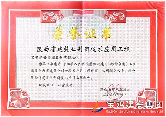 本工程2019年被評為“陜西省優(yōu)質(zhì)結(jié)構(gòu)工程”、“ 陜西省省級文明工地”。