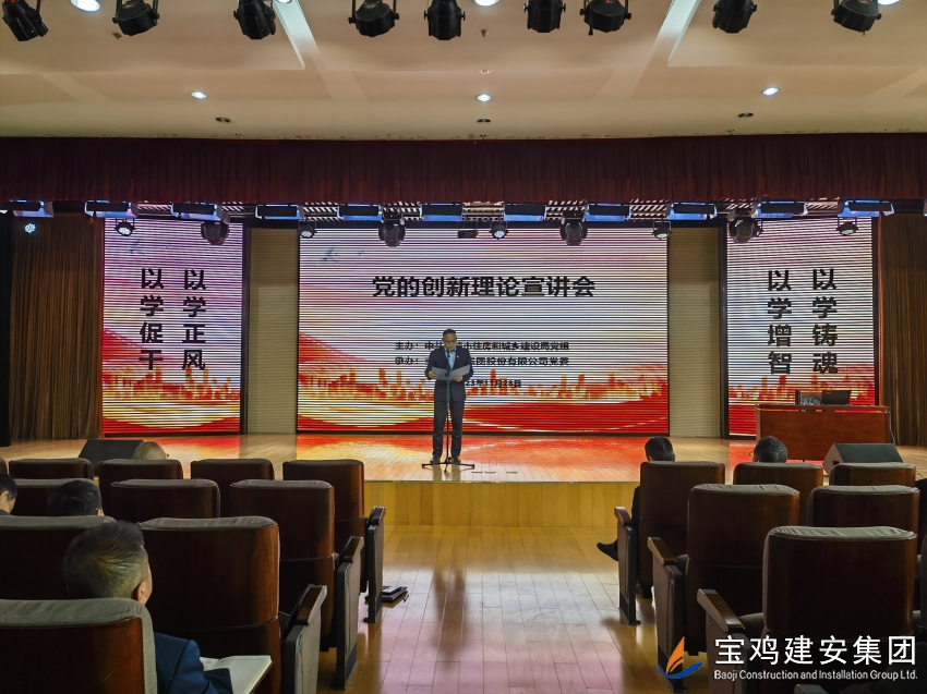為認(rèn)真學(xué)習(xí)貫徹習(xí)近平新時代中國特色社會主義思想和黨的二十大精神,扎實深入推進主題教育。11月28日下午,在寶雞建安集團股份有限公司24樓多功能廳舉辦了一場“學(xué)習(xí)貫徹講話精神、著力推動高質(zhì)量發(fā)展”黨的創(chuàng)新理論宣講會。本次宣講會由中共寶雞市住房和城鄉(xiāng)建設(shè)局黨組主辦,寶雞建安集團股份有限公司黨委承辦,局機關(guān)和局屬27個企事業(yè)單位200多名黨員干部參加了宣講會。 寶雞建安集團公司黨委副書記胥永寧在致詞中,感謝局黨組對寶雞建安集團公司的信任和大力支持,介紹了公司經(jīng)營生產(chǎn)情況和黨建工作開展情況,并邀請局系統(tǒng)各兄弟單位蒞臨指導(dǎo),加強學(xué)習(xí)交流,共同拓展工作思路,促進各項工作更上一層樓。