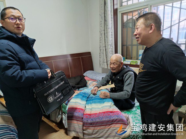最后,對建國前參加革命工作的老黨員荊玉華同志家進行慰問。大家來到家里,荊師傅拖著年邁的身體從床上坐起來,熱情的和黨群部同志打招呼。他非常感謝公司對他這位老同志的關心及問候,同時也祝福集團公司的事業蒸蒸日上、興旺發達。
